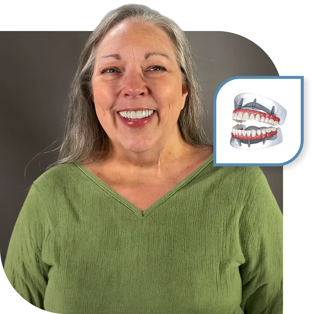 All-On-X® can be a great upgrade. Many people switch from dentures to implants for more stability and comfort. We can evaluate if this switch is right for you.